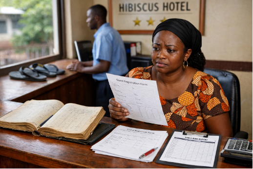 Yet reality intruded almost immediately. Receptionists, long reliant on two handwritten ledgers, balked at the introduction of administrative forms designed to capture incomes, audit sales summaries, and prepare “Early Bird” reports showing daily room status and departmental incomes. Without computerized systems, the paperwork felt overwhelming. Training sessions were held in small groups, but attitudes proved harder to change. Mr. Adams, HA’s General Manager, issued queries that revealed the clash between informal habits and professional expectations. One staff member was reprimanded for spreading sandals in the sun at the front desk, another dismissed for ignoring a query on night audit reports, and a kitchen worker queried for leaving fish exposed after closing early. These letters showed HA’s determination to enforce discipline—uniforms, punctuality, reporting lines—but also highlighted the fragility of staff morale. Some employees left, creating instability just when HA needed continuity.